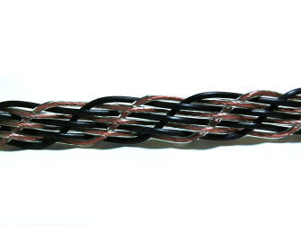 おそらく銅線と銀線のハイブリッドであろう8芯線は、まるでガラガラ蛇やアナコンダを連想させる毒々しいルックスに。編み方がとても丁寧でキレイなので、見た目のゴツさとは裏腹にしなやかです。