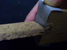 ▲軽く断面を整えて本体に接着。 |